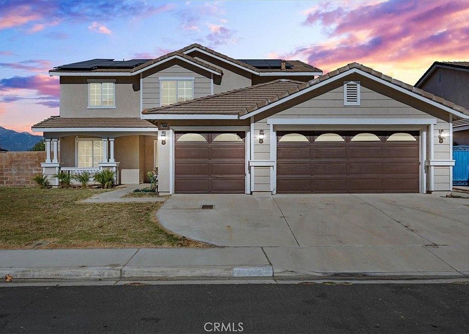 Now available! This two-story home is located in Country Club Estates in Fontana on a quiet cul-de-sac. The first floor features a living room, a formal dining room, and a family room. The remodeled kitchen includes granite countertops, stone-accented interior walls, a walk-in pantry, and a breakfast nook. A downstairs bedroom with access to the hall bath offers an ideal space for guests or extended family. The second floor includes a bonus/game room, a primary bedroom with an en suite bathroom and walk-in closet, three additional bedrooms, and a hall bath. Interior improvements include wood-plank composite flooring, crown molding, ceiling fans, recessed lighting, and remodeled bathrooms. Exterior highlights include a covered front porch, pool, covered patio with deck, and exterior lighting. Located off Sierra Ave., this home offers excellent access to the 10 and 60 freeways, major employment hubs, Ontario International Airport, and Kaiser Permanente Fontana Medical Center. No HOA Dues! See for yourself!