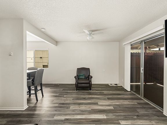 This upstairs apartment, with no neighbors below and only one shared wall, features an open floorplan with expansive living and dining areas that flow to a large private patio. The kitchen includes a dishwasher and features like-new modern stainless steel appliances. Remarkably large walk-in closet off the bedroom and ample storage space throughout.