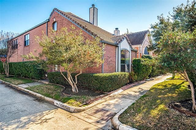 Prime Addison Location-SHOWS LIKE A MODEL! Hard to find Low Maintenance, well maintained contemporary GARDEN HOME in Addison under $300K! FLEXIBLE FLOOR PLAN:1 Bdrm & Bath DOWNSTAIRS! 2 liv areas, 2 dining, 2 story ceilings, open concept, WOOD floors throughout (tiled kitchen & baths) Stainless Appliances, Granite Counters, brkfst bar, Fireplace, walls of windows-lots of natural light! 8ft fenced Patio, 2 car gar & extra storage space for shed. CORNER LOT, convenient to 6 visitor parking spaces across street, walking distance to amenity center, pool, lighting treed greenbelt, walking trails, dog park & membership to Addison Athletic Club-AMAZING Price! Low HOA Fees. Minutes from Restaurant row & NDT!