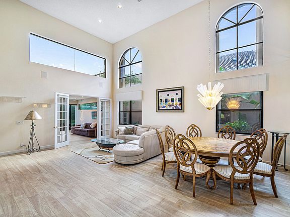 This charming home is filled with natural light in every room. With new wood-like plank tile floors in the main living areas, the fresh and bright home features a flowing floorplan with magnificent volume ceilings. On the main level, the open concept dining room and living room lead to the large first floor den/office with beautiful french doors and tranquil backyard views. The family room and eat-in-kitchen with stainless steel appliances seamlessly complete the first level living areas. The first floor master suite features sliding glass doors to access the yard as well as a spacious master bath with his/her closets. Upstairs, two en-suite bedrooms are perfect for guests. The backyard offers privacy while dipping in the in-ground whirlpool spa with the mature landscaping surrounding the 2019-10-28