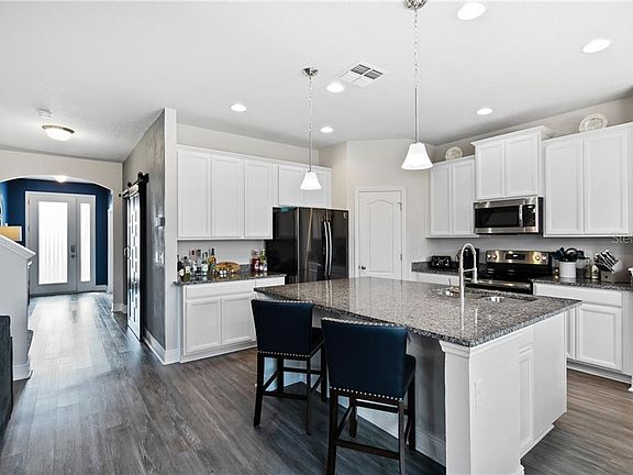 A fantastic, modern almost new 4 bedroom 3 bath 3 car garage two story home in the popular community of Serenoa in South Clermont. This amazing home offers a spacious open floor plan with an OVERSIZED YARD with CONSERVATION & WATER VIEWS. There are so many great features to this home including a private home office with bright natural light coming thru the front windows. There is a movie theatre with tasteful decorative barn doors, a gourmet kitchen with an island pantry, granite countertops, stain steel appliances and beautiful white cabinets. Upstairs a large family room great for entertaining. The master suite is very large and spacious with two walk in closets. The master bath has dual sinks, garden tub with a separate shower. The community is conveniently located close to restaurants, shopping, Disney Theme Parks, Sunset Walk at Margaritaville Resort & major highways all within minutes. Serenoa residents enjoy state of the art amenities including a clubhouse, 24 hour fitness center, resort-style pool, splash pad, dog parks, jogging trails, planned community events and activities give this master-planned community a scenic, small-town feel within a beautiful wooded setting. Video Tour available, call for your private showing today!