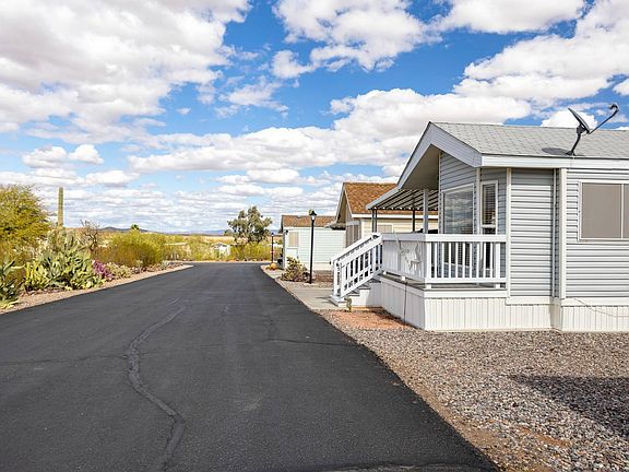 Enjoy stunning mountain views of Picacho Peak right from your front porch! This well-kept, furnished 2008 Chariot Eagle 1-bedroom, 1-bath home boasts a spacious front living area with ample natural light, lots of kitchen cabinet storage, new bedroom carpeting, and updated paint and flooring throughout. The vaulted ceilings add an airy, open feel, making the front living space feel even larger and more inviting. The bathroom features an easily accessible walk-in shower. Located in a gated 55+ community with a rec room, pool, clubhouse, laundry facilities, and more.