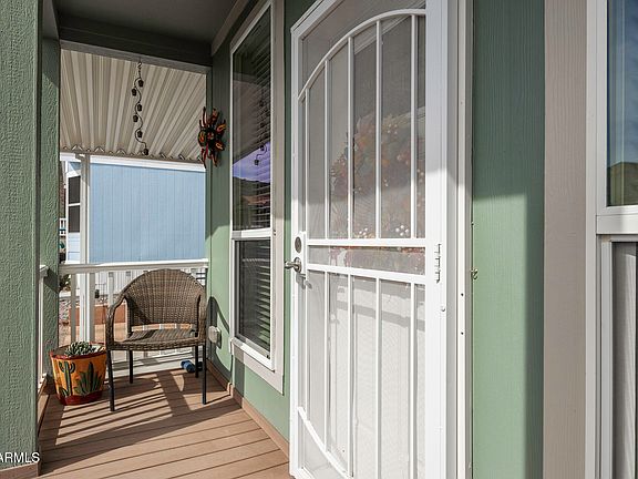 Absolutely breathtaking views! Located in the sought after 55+ community of Picacho Peak RV Resort, this is desert living at its finest. This home will greet you with a cozy front porch and inside you'll find staggered knotty oak cabinets, laminate wood floors, an abundance of storage, king size orthopedic bed, skylights, and an Arizona room with lots of lighting and cabinets. Outside you will find a long paver patio and extra storage as the Arizona Room has seven underneath compartments, three of which have drawers. Not to mention you'll find a golf cart and bike! This gated community offers an abundance of amenities including pickleball courts, biking/hiking trails, swimming pool, as well regular activities at the clubhouse. Come take a look at what life could be by Picacho Peak!