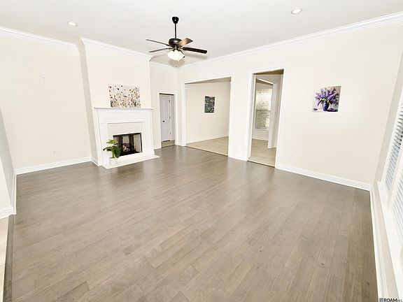 Welcome to 17065 White Ibis, a “better than new” 3 bedroom home in the highly desirable Jamestown Crossing subdivision. This open-concept design features a formal dining room, private office with built-in desk, and a stunning kitchen with quartz countertops, large island, walk-in pantry, and stainless gas appliances. The living area shines with wood-look floors, a quartz fireplace, recessed lighting, and abundant natural light. The primary suite offers a tray ceiling, spa-like bath with soaking tub, separate shower, double vanity, private water closet, and spacious walk-in closet. Additional highlights include a mudroom with boot bench, custom mirrors, Tuscan bronze fixtures, and a covered rear patio. Energy-efficient features such as a tankless water heater, smart thermostat, radiant barrier roof decking, and low-E windows ensure lasting value. Nestled among mature trees with ponds, sidewalks, and inviting common areas, this Prairieville gem is the perfect place to call home!