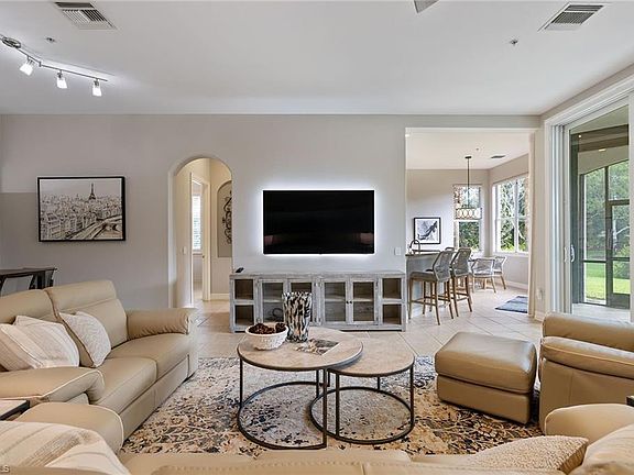 Immediate golf membership available! Set in a private cul-de-sac in Porta Vecchio at Mediterra, this residence blends effortless modern living with thoughtful upgrades and refined comfort. The three-bedroom plus den, three-bath floor plan features a two-car garage with epoxy flooring. A new Control4 system automates interior lighting throughout the home. Impact-rated sliders in the great room and remote-controlled hurricane screens at the outdoor living area enhance safety and ease of use. The kitchen has been updated with refinished cabinetry and reverse-osmosis water filtration, while Hunter Douglas motorized window treatments offer both elegance and convenience throughout the home. Natural light and a desirable southeast exposure enrich the living and dining areas, which are designed for everyday living and entertaining. A spacious screened-in lanai provides a tranquil setting for morning coffee or sunset gatherings. The private primary suite is complemented by two guest bedrooms and a flexible den, ideal for remote work or additional guests. Residents of Mediterra enjoy access to 36 holes of Tom Fazio-designed championship golf, Har-Tru tennis, pickleball, bocce and a vibrant social calendar. Enjoy your toes in the sand and golden sunsets at Mediterra’s private Beach Club along the Gulf. Valet parking, reserved lounge chairs, 10,000 square feet of beachfront space, indoor and alfresco dining, a full bar, pool, lockers and dressing areas elevate the experience. A new Sports and Lifestyle Center is also coming soon, designed to enhance wellness and connection within this award-winning community. This move-in-ready residence offers a rare opportunity to enjoy the best of the Mediterra lifestyle immediately.