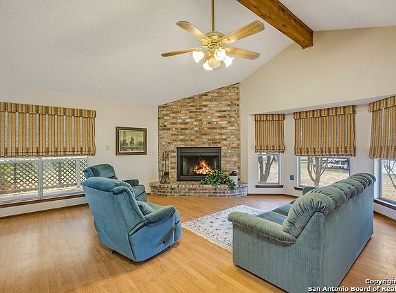 RARE COUNTRY PARADISE IN THE HEART OF HELOTES. 2.13 Acres w/abundant Pecan tress & SPLENDID 600 yr old OAK. Custom Home is open & bright w/vaulted ceilings, floor to ceiling brick fireplace. Kitchen cabinets galore! Large pantry, built-in shelves, gas cooking, w/eat-in. Sizable master suite w/garden window, walk-in, lots of light! Dbl vanity, Shower, bidet. Wood floors. Enjoy leisure time on your covered patio 54' x 12'. Gorgeous backyard! Spectacular view of GRAND OAK TREE! Workshop, 2 attached w/carport.