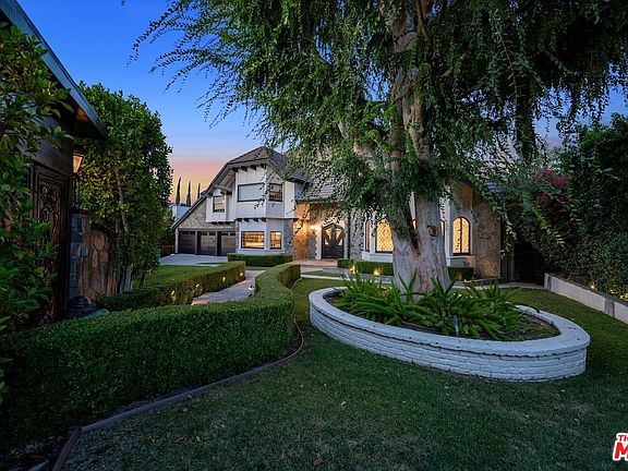 Experience everyday luxury living in this gated French Manor Estate, nestled in one of the most coveted neighborhoods of Encino Hills South of the Blvd. This exceptional residence captures sweeping city-light views and spans over 8,900 square feet of exquisite living space, featuring six bedrooms and eight bathrooms. Completely remodeled, the home blends elevated design with meticulously curated upgrades for comfort, style, and effortless entertaining. Upon arrival, guests are welcomed through a spacious courtyard into a grand entry filled with natural light and soaring ceilings. The great room showcases custom built-ins and coffered ceilings, while the living room's exposed beams create a warm, sophisticated ambiance. The private formal dining room, framed by expansive French windows, seamlessly connects to a butler's kitchen for ease of service. The gourmet kitchen is a chef's dream, appointed with top-tier appliances, a generous island, and a farmhouse sink overlooking tranquil city views. Upstairs, the expansive primary suite serves as a private sanctuary with a spa inspired bathroom featuring an oversized jet shower, double vanities, a fireplace, a large walk-in closet, and a private terrace framing the spectacular views. Three additional en-suite bedrooms complete the top level. Descending to the third level reveals an entertainer's haven with a state-of-the-art theater, an elegant billiards room with terrace access, a sauna, a library, and a climate controlled wine cellar. The outdoor spaces are equally impressive, featuring a sparkling pool, fireplace, basketball court, and pool house perfect for year-round gatherings. This is a residence of unmatched caliber that must be experienced in person to be truly appreciated. Schedule a private showing today and witness its beauty firsthand.