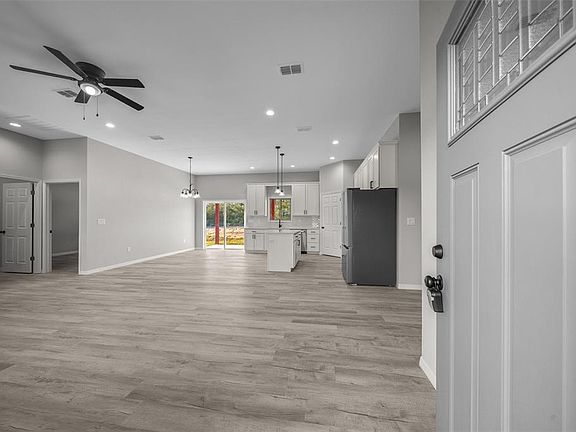 $5,000 TOWARDS BUYERS CLOSING COSTS & A RECENT PRICE IMPROVEMENT • BUILT ABOVE STANDARD! This beautifully crafted new construction home includes a builder warranty, exterior preventive treatment, and thoughtful upgrades that set it apart from the rest. Set on a spacious 0.38-acre lot with no neighbors in front or behind, it offers a rare sense of privacy, style, and everyday convenience. Elevated slightly above surrounding homes, it provides peaceful views, a level usable backyard, and the freedom of no HOA fees or restrictions. Inside, you’ll find 10-foot ceilings, luxury vinyl flooring throughout, and large Pella windows that fill the space with natural light. The chef’s kitchen features solid wood soft-close cabinetry, quartz countertops, a tile backsplash, a large island, and a walk-in pantry with wood shelving and motion-activated lighting. Stainless steel refrigerator, range, microwave, and dishwasher are all included. The primary suite feels like a retreat with dual quartz vanities, a massive porcelain-tiled shower, and a custom walk-in closet. Every detail was thoughtfully designed, from the oversized 36-inch doors to the quartz-topped laundry room with a folding counter and custom cabinetry. Outdoors, enjoy a grand covered front porch with 10-foot ceilings and an extended roofline, plus a rear patio with a ceiling fan, perfect for relaxing or entertaining. The oversized two-car garage includes an 8-foot door, side entry door, and an extended driveway. Located just minutes from a new Aldi, Dollar General Market, and the upcoming Publix, this home combines craftsmanship, convenience, and curb appeal. A builder warranty is included for added peace of mind, along with a one-year exterior preventive treatment; reflecting the builder’s commitment to lasting quality and care. Built above state-required energy standards, this home offers enhanced comfort and efficiency year-round. Built with care, quality, and attention to detail, this home truly stands out among the rest. • SCHEDULE YOUR SHOWING TODAY!!