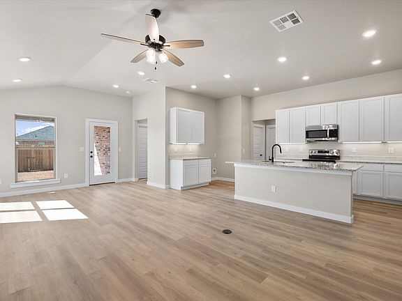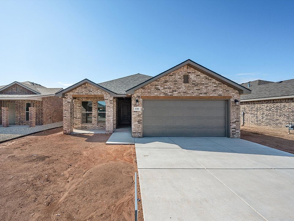 This 1,700 square-foot affordable new home greets you with stunning curb appeal featuring a brick exterior with decorative cedar headers and a large front entryway. In this 4 bedroom, 2 bathroom new home, you will find the perfect balance between an open concept floor plan and functionality, perfect for large families needing both space and affordability. This quality new home boasts a private master bathroom with double vanities, an open living and dining space, and multiple windows placed perfectly throughout to welcome an abundance of natural light. *Painted brick available as an upgrade to our Penny floor plan.