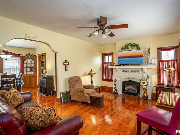 Charming 1-story bungalow style home in the heart of Moline. Amenities include wonderfully maintained hardwood floors throughout the main livingarea, numerous built-in wood cabinets, and tile floors in the updated kitchen and a cozy 3 season room. This well kept home is close to schools & shopping yet feels very private with its lush landscaping. Enjoy the weather on the inviting deck & patio that makes for great outdoor living. .
