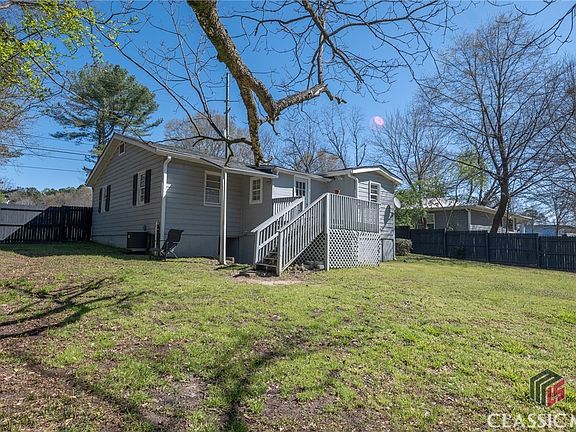 A cute 2 bedroom 1 bath located just inside the city limits of Statham. As you come around the circular gravel driveway you will see a well-maintained cottage ready for its new owners. Park under the cover awning which will show you one of the two front entrances into the home. The home has a beautiful sunroom that flanks the large living space. A small hallway will lead you past the updated bathroom. At the end of the hallway will be the two matching bedrooms located on the right side of the home. As you move to the rear of the home you will pass thru the dining area to the eat-in kitchen. The kitchen is outfitted with stainless steel appliances and solid granite countertops. From here you can see the laundry room with new LVP installed which leads out to the deck and is a completely fenced-in backyard. The Backyard also has a small fire pit and a storage building that stays with the property. Extra storage can also be found under the home.