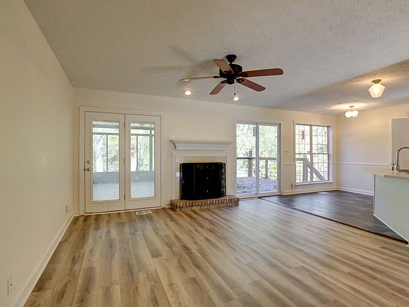 The home features a wood-burning fireplace, a sunroom, and a spacious deck—ideal for enjoying quiet evenings by the water. A Vivint Security System with doorbell and cameras remains, along with the trampoline and playset!