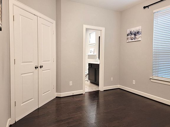 The house features spacious open concept with beautiful Hard wood floor throughout. En-suite bathrooms in both the master and secondary bedroom. Kitchen features stainless steel appliances. Refrigerator, washer, and dryer are included in the lease. The house includes Smart home feature such as smart garage opener, digital keypad door lock, smart thermostat.