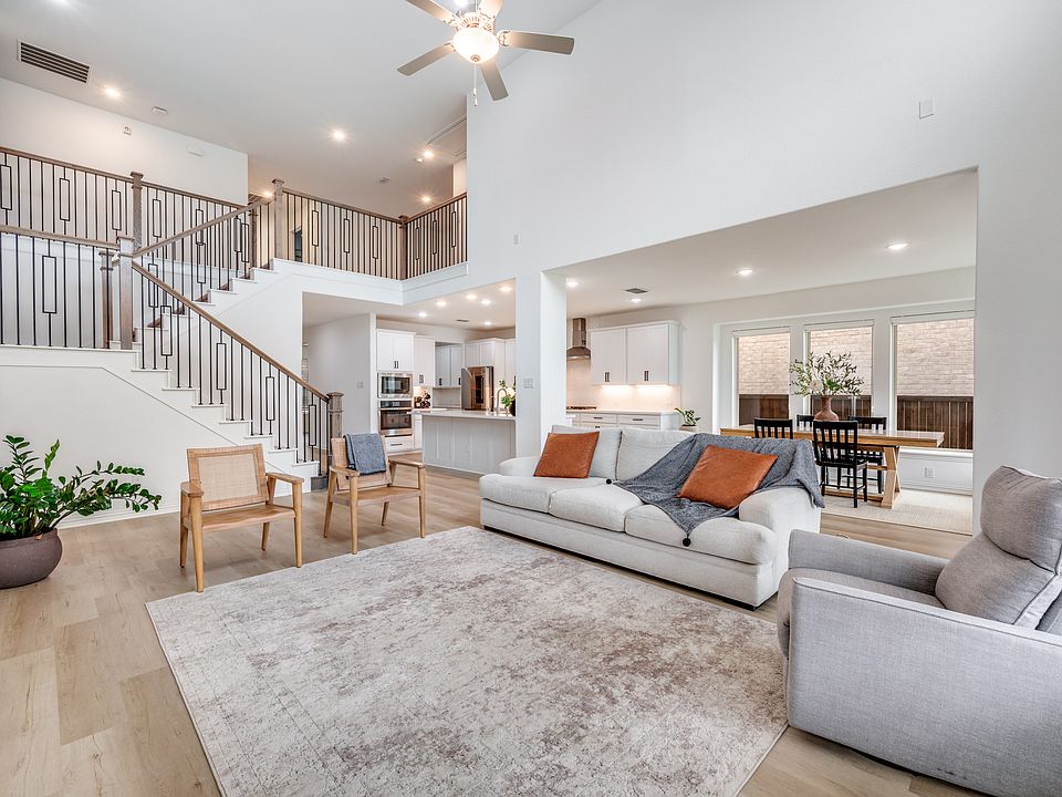 Discover the epitome of luxury living in the heart of Celina, TX with this stunning 5-bedroom, 2.5-bathroom down and 2.5- bathroom up residence. Tucked away on a quiet interior lot, this home offers a serene escape with close proximity to Tollway for access. Upon entering, a super functional floorplan designed to fulfill every lifestyle need. The peaceful neutral decor creates a calming ambiance, enhanced by an abundance of natural light that flows through expansive windows. Perfect for entertaining, the home features a seamless blend of open living spaces and cozy nooks, each designed for optimal versatility. The well-appointed kitchen, a true chef's delight, boasts SS appliances, modern cabinetry, and substantial counter and pantry. It leads gracefully into both formal and casual dining areas, making it ideal for grand occasions and intimate gatherings alike. The primary suite is a sanctuary of luxury, offering a spacious retreat complete with a spa-like bathroom and generous walk-in closets. Each additional bedroom has been thoughtfully designed with multiple ensuite baths for privacy and comfort. The expansive floorplan also offers separate office, media, loft and game spaces for multi-gen living. Additional upgrades include wired for EV in garage, water softener, kitchen fridge and washer and dryer optional. Move in Jan 17 2026. This home will not disappoint!