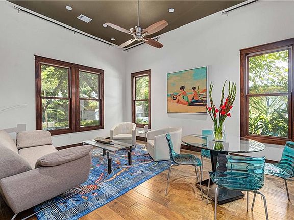Gorgeous Modern Craftsman on quiet tree-lined street in unbeatable SoCo location! Wonderful walkability! Main house has 3 bedrooms on first floor with large flexspace/office/additional bedroom upstairs. Tranquil terraced garden and patio. Rare 3-car garage with parking pad and alley access. Studio apt for 4th bedroom, workspace or rental income. Hardwood floors, 12' ceilings, bespoke artisan metalwork and woodwork by Drophouse. Energy efficient construction. An amazing oasis in the heart of SoCo!Guest Accommodations: Yes Sprinkler Sys:Yes