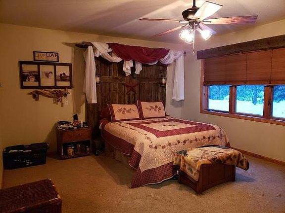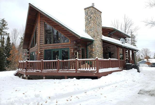 COUNTRY CHARM with CITY LOCATION. This log sided chalet style home is in the city limits, but the setting is a spacious, country sized, wooded lot. The upper level LOFT Bedroom is open to the great room area below. There is a fantastic western view through the soaring great room windows. The main floor offers 2 Bedrooms, a full bathroom, kitchen with island, dining area with an Edison style lighting fixture and the soaring great room with patio doors to the deck and a stone gas log fireplace. The lower level is partially finished and being used as a rustic family room area with a bar. Great for entertaining or a theater style room. There is also a stubbed in bathroom area for future expansion and the laundry/mechanical area. Come and tour this home soon!