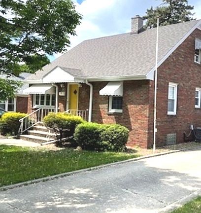 Brick single family cape cod with 2 bedrooms, 1 bath , 2.5 car heated garage-as is, updated kitchen with cabinets & table space, living room with extra windows and ceramic floor, bedrooms with ceiling fans, central air/heat, concrete driveway, extra cart port with storage rooms on the side. easy to show.