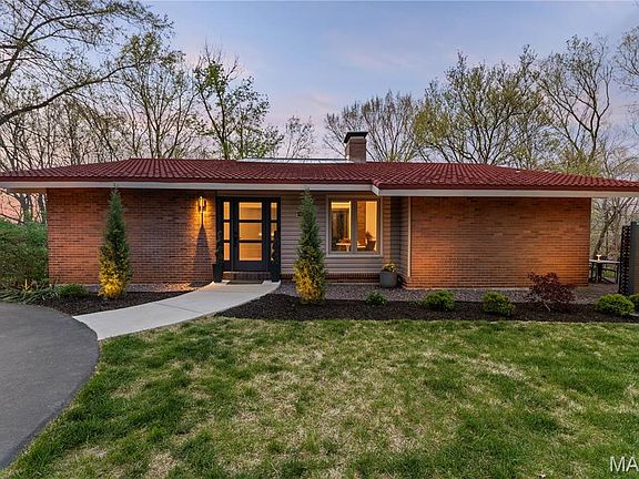 Experience serene California contemporary style in this transformed atrium ranch on a private lane in the Kirkwood School District. A sky-lit central atrium w/ tropical plants anchors the open floorplan flooding every room w/ natural light. Situated under a vaulted ceiling, the high-end kitchen pairs custom cabinetry w/ quartzite stone, Monogram appliances w/ induction cooktop flowing into a living room featuring a wood-burning fireplace & access to a patio. Entertain in the chic dining room or spill outside to multiple alfresco areas. The luxury primary bedroom has an en-suite bath, dressing room, floor to ceiling windows w/ automated shades. A full bath serves a second bedroom w/ a tub/shower & designer cork wallcovering. Walk-out LL has an office/exercise room. Outside you'll find a covered cozy area w/ fire table, water feature & garden pathways. Two-car tandem garage. Set on .56-acre lot, this move-in-ready distinctive home is designed to support daily living and relaxation.