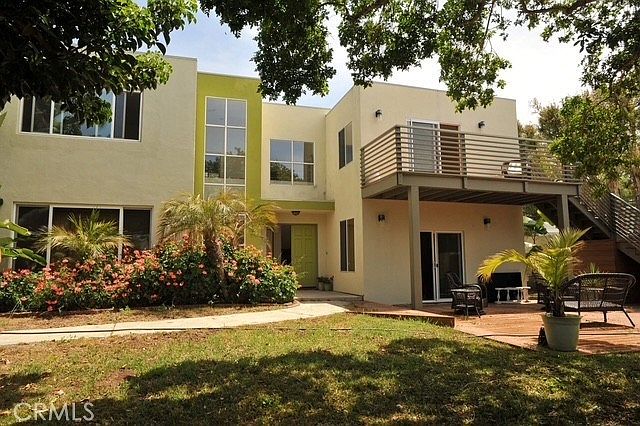 Location, Location, Location! This beautiful four bedroom 3 bath home sits up on hill with lots of privacy and seclusion. As you enter the front yard through the gate you begin to forget you are in the hustle and bustle of Southern California. Stucco wall and large trees Bring not only shade but privacy and security. As you enter through the double door entry you are greeted by soaring ceiling and floor to roof windows. To the right of the home is the downstairs bedroom and full bathroom. There is also a step down family room with glass doors to a large covered deck. Open those doors to let the ocean breeze flow through the home. There is a cozy electric fireplace, all the warmth and ambience without the smoke and mess. On the left side of the house is the open kitchen and formal dining room. The kitchen has quartz countertops new refigerator, and large center island with breakfast counter. The formal dining room has doors to the private backyard. Upstairs are three more bedrooms and two baths. The master is amazing, with is private deck and large master bath complete with spa tub. Both of the other bedroom are good size with a beautiful bathroom upstairs as well. This home also has paid off solar making the utilities very low. Also walking distance to shops and restaurants. You have to come see it for yourself.