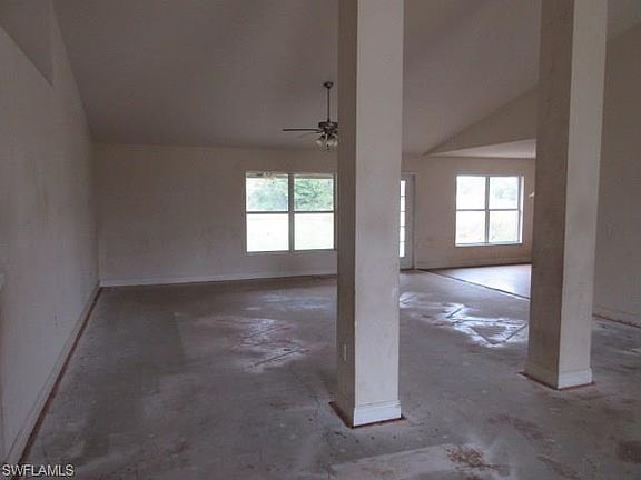 Opportunity awaits you with this HUGE 4 bedroom 3 bath custom home needing extensive repairs and updates. Sold AS IS. Open floor plan with cathedral ceilings in living room and tray ceiling in master bedroom. Large kitchen with island. Two car attached garage, laundry room off kitchen, open lanai, large master bath. Just under 3000 sq ft, this property has endless potential!