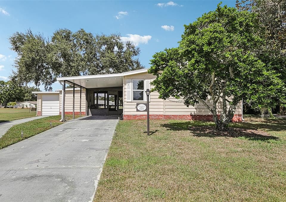 ATTENTION GOLF LOVERS!!! Partially Furnished 2/2 GOLF FRONT HOME on a PIE-SHAPED LOT with a GOLF CART GARAGE on the Orange Blossom Championship Golf Course in The Villages!!! Surrounded by MATURE LANDSCAPING, this lovely, well-maintained home is located on a PEACEFUL CUL-DE-SAC on the Historic Side of The Villages. Enjoy BREATHTAKING PANORAMIC VIEWS of one of THE most picturesque golf courses from your back patio or from the Florida Room which has a built-in wet bar and an electric fireplace. New, light gray laminate flooring throughout the home brightens up the entire living space. NO CARPET. There are also newer windows, a newer AC (2022) and water heater (2023). Enjoy this piece of paradise and all the WORLD-CLASS AMENITIES that The Villages is famous for: golf, pickleball, tennis, pools, recreation centers and nightly live entertainment. Schedule your private showing today!
