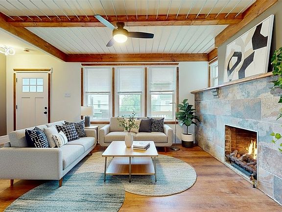 Gas fireplaceQuartz-style countersFenced yardSleek kitchenDual skylightsBright bonus bedroomPrimary suite
