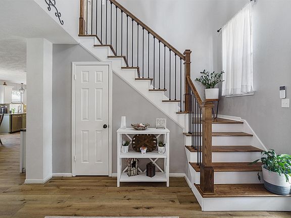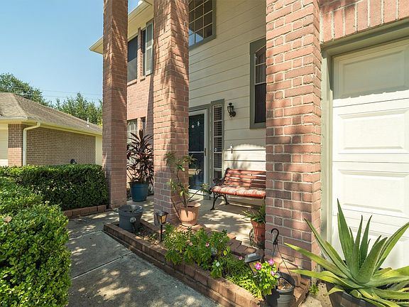 Welcome to your next home in Kemah Oaks! Nestled at the end of a cul-de-sac, this 4-bed, 2.5-bath beauty is full of charm & updates. The tall foyer makes a grand entrance, with a formal dining (currently used as an office space) just off the entry. The spacious family room offers a gas fireplace, built-ins & windows that fill the space with natural light. Luxury vinyl floors flow throughout the downstairs. The kitchen features painted cabinets, granite counters, trendy backsplash, pantry & breakfast area. An updated staircase with wrought iron & oak wood leads upstairs to the large primary suite with walk-in shower, linen closet, dual sinks & roomy walk-in closet. Three bedrooms, a game room & laundry room complete the upstairs. Outside, enjoy a pool-sized yard with patio, pergola & storage shed—an entertainer’s dream! Located in CCISD, close to shopping, dining & the famous Kemah Boardwalk!
