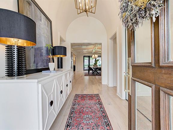 Welcome to this elegantly remodeled RARE ONE-LEVEL HOME in Nichols Hills. Spanning 4,650 square feet, this home offers a harmonious blend of traditional & modern design. It features 4 bedrooms, each with its own en suite bathroom, a formal powder room, pool bath & 2 dedicated offices. Remodeled to the studs 2 years ago, an expansive gym, pool & 4 car garage add to the home's appeal. The large covered back patio, complete with an outdoor fireplace, provides an inviting space for entertaining. Inside, the formal dining room includes built-in cabinetry, a vaulted ceiling, wine cellar & floor to ceiling windows with a view of the pool. The gourmet kitchen is equipped with professional grade appliances, custom cabinetry & designer finishes & fixtures. With an Arabescato marble backsplash & expansive Saratago granite island you won't find a more sophisticated kitchen anywhere else. The living room, with its spacious & functional layout has 14 foot vaulted ceilings & an Arabescato marble fireplace for a touch of elegance. The primary bedroom, designed with a moody aesthetic, features a custom walk-in closet with expansive island & chandelier. The primary bathroom includes marble tile & counters, steam shower, soaking tub, & vanity complete with its own laundry for a true suite. Outside, the pool, with both a waterfall & swim deck, is fully enclosed with iron fencing & a backdrop of mature landscaping. The backyard offers space for a putting green, garden, or any other outdoor activities that fit your needs. Mature landscaping enhances the property's charm, & the front yard includes a courtyard for outdoor seating with a chiminea or fire pit. This home is designed for both comfort & style, providing a perfect setting for entertaining & everyday living.