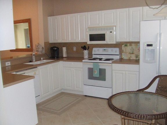 Second (top) floor, 2-bedroom, 2-bath end unit in the St. George community of Crown Pointe. Tile floors throughout living areas and carpet in bedrooms. Master BR has queen bed, 2 dressers, double sinks in vanity and walk-in closet. Guest BR has 2 twin beds and dresser. Spacious kitchen with newer side by side fridge. Laundry room has washer and dryer with extra storage in unit. 2 flat screen TV's with cable and Wifi included. Enjoy sunny mornings on the tiled lanai with lake and landscaped views. Steps to heated, salt-water pool. St. George is a quiet and friendly community of 52 condos. Amenities of the larger Crown Pointe Association are included, such as tennis, clubhouse and fitness center. Convenient to all Naples has to offer. 4.5 miles (15 mins.) to beach, and less than 4 miles to 5th Ave. No smokers or pets please. Renting monthly December 2025 through March 2026.