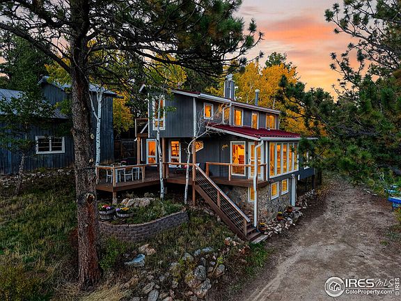 SUNNY NEDERLAND HOME - This south-facing home is located in the coveted Bonanza Mountain Estates neighborhood just above Barker Reservoir with easy access to downtown Nederland and only ~25 minutes to Boulder. Floor to ceiling windows on the main level with southern exposure and a high-efficient wood-burning stove make for a warm and cozy light-filled home. Well cared-for and Updated. New paint/carpets. Spacious Bedrooms. Indoor Sauna. Also features a large detached 2-car garage/workshop/barn. Septic Smart approved. YES!