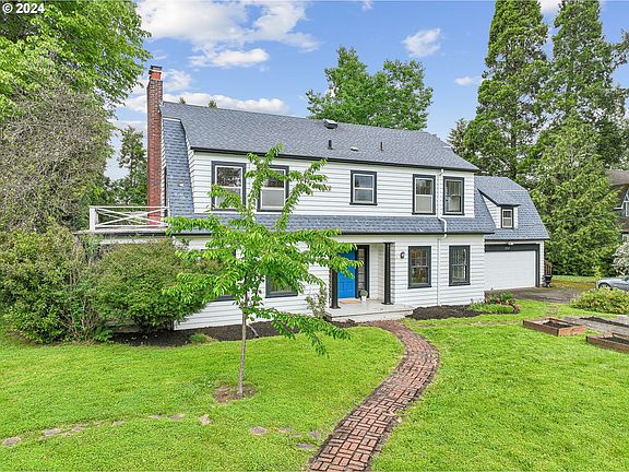 This stately Dutch Colonial in the beautiful Oak Grove neighborhood sits on over 1/2 an acre, offering plenty of space for outdoor activities. This classic home has retained much of its historical charm, yet also offers many modern updates. The main entrance leads to a foyer with an impressive staircase.  To the left is an expansive living room, complete with built-ins and a vintage tiled fireplace, as well as a french door that leads to a covered patio.  To the right of the foyer is a formal dining room that is filled w/ light from the many large windows.  The spacious kitchen is perfect for cooking with friends and family w/ plenty of storage and places to convene.  The deck off of the kitchen is the ideal spot for warm weather entertaining. The laundry room and mudroom are also on the main floor, as is the over-sized garage that could function as an art studio, home gym, or workshop.  The main floor pink powder room is a true mid-century lover's dream!  The upper floor offers 4 expansive bedrooms, all complete with vintage sconces & moulding & built-ins.  Two of the bedrooms have French doors that lead to a second floor balcony for enjoying sunrises, sunsets, or evening stargazing.  The yellow & blue tiled bathroom on this floor is also a perfectly preserved vintage space.  Through the fourth bedroom is an amazingly charming mother-in-law suite/studio, complete with a kitchenette, full bath, and exterior entrance.  This could be a fifth bedroom, the perfect option for multi-generational living or a great short or long-term rental opportunity. The basement is partially finished and could function as a media room, additional living space, or the perfect home office.  This home is truly special, exuding character and classic details throughout.  The location is idyllic, close to Downtown Milwaukie w/ an easy commute to Portland and surrounding areas. With a newer furnace, central A/C, & paint-all you have to do is move in and make it your own. [Home Energy Score = 1. HES Report at https://rpt.greenbuildingregistry.com/hes/OR10228937]