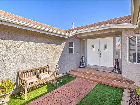 Experience this bright, airy single-story gem—formerly the community’s model home—perfectly set at the end of a cul-de-sac on the Boulder City Golf Course. The smart layout separates the primary suite from three additional bedrooms. Enjoy an expansive backyard with golf course views, fruit trees, desert landscaping, and an oversized pool with automatic cover. Inside, sun-filled living spaces feature newer blinds, flooring, baseboards, artificial grass, a potassium water softener, upgraded irrigation controls, and a new back wall. With RV parking and no HOA, this beautifully updated home delivers effortless living in a premier location.