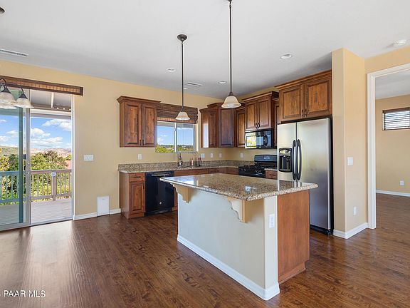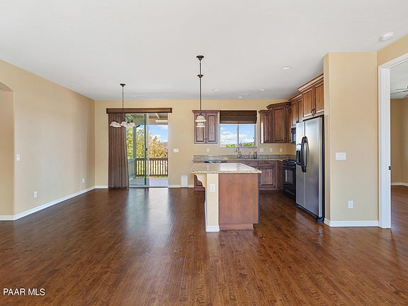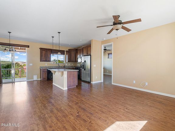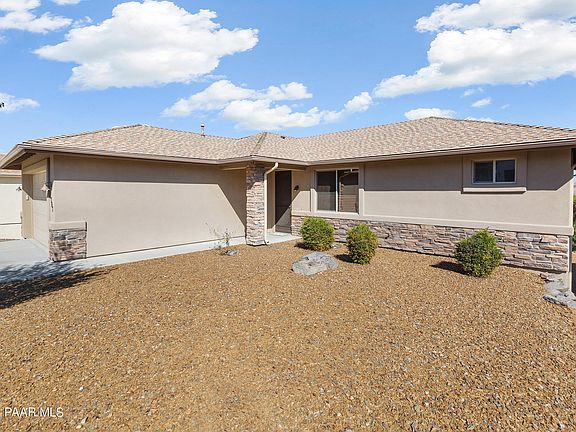Enjoy the amazing view of Granite Dells and surrounding mountains from the covered deck in this quality built, move-in ready 3 bd/2 bath single level home in Cliff Rose. The raised 10ft ceilings create an open and spacious feel. Granite counter tops and laminate flooring add warmth and comfort to the home. The large backyard has fenced area for dog run and abundant multi-use potential. Low maintenance landscaping and 2 car garage are an added bonus! Sidewalks throughout Cliff Rose benefit an active lifestyle. Conveniently located to the Center on Rosser, Hwy 89 and 69(to Trader Joe's/Costco) and downtown Prescott.