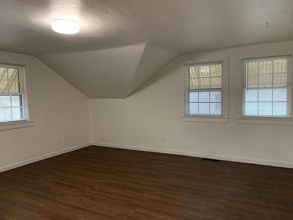 Roomy upstairs apt., private entry stairs, easy care, vinyl plank flooring, open floor plan, extra closet off bathroom. AC provided, off-street parking for 1 car. Nice sized bedroom, big living room.