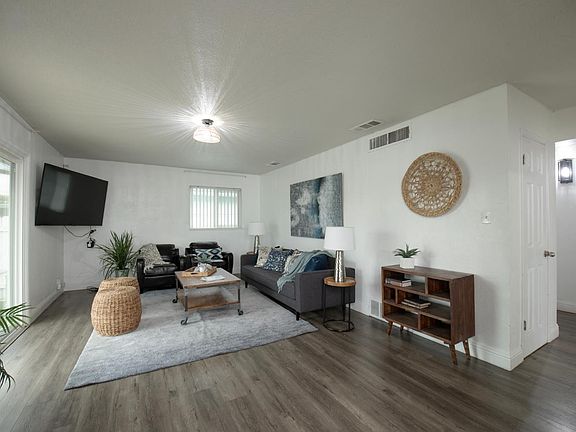 Corner-lot home offering 3 bedrooms and 3 bathrooms, plus a spacious secondary living area that works perfectly as a bonus room or home office. The main living room features updated flooring, a large slider for easy backyard access, and a modern feel throughout. The additional living space is bright and versatile, with its own slider leading out to the yard. Low-maintenance backyard with synthetic grass. Solar included for added energy efficiency. Located in an established neighborhood with wide streets and well-kept homes.