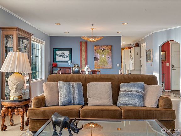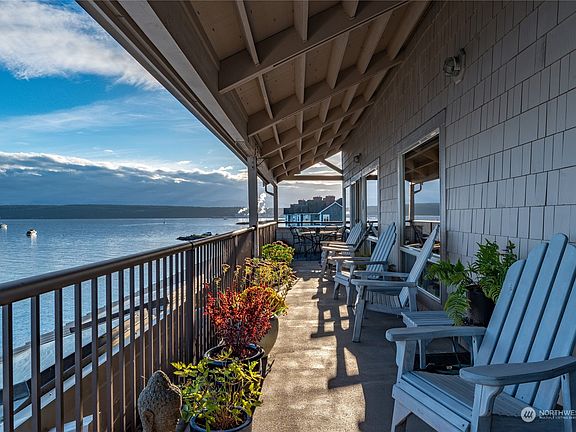 Oh, my goodness! Living on the waterfront has never been so amazing. Spacious Penthouse on Port Townsend Bay with Cascade/Rainier views, glorious southern sun, along with western views towards the Olympics. Great Room concept with oodles of space for all your needs; dining, cozy nesting around the fireplace, den/office. Large kitchen with plenty of storage, dining area with window banquette, handy second exit. Perfect for entertaining! Shoji screens in the "flex area" to create privacy. This has been used as a guest room when desired. Huge covered deck allows you to enjoy the marine life, sail boats/ferry year round, accessible from both living room & primary bedroom. In the heart of downtown Port Townsend where all the fun is! Fabulous!