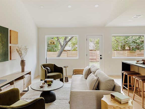 Gorgeous mid-century restoration in the coveted Windsor Park neighborhood! :: Open & bright concept living with an abundance of natural lighting. :: Stunning kitchen boasting brand new oak cabinets, Cobalt quartz countertops w/ amazing waterfall island, Full appliance suite and wine bar. :: Spacious primary bedroom w/amazing bathroom ensuite showcasing a spa-like walk-in shower. :: New Oak Engineered wood floors throughout. :: Custom designer tiles and fixtures. :: System upgrades include all new PVC plumbing system, new water lines, sod & irrigation, full rewire with Romex, new HVAC system, Black/White Vinyl Windows and new wood fence. :: Minutes to Bartholomew Park, HEB, Dell Children's, University of Texas and Downtown Austin