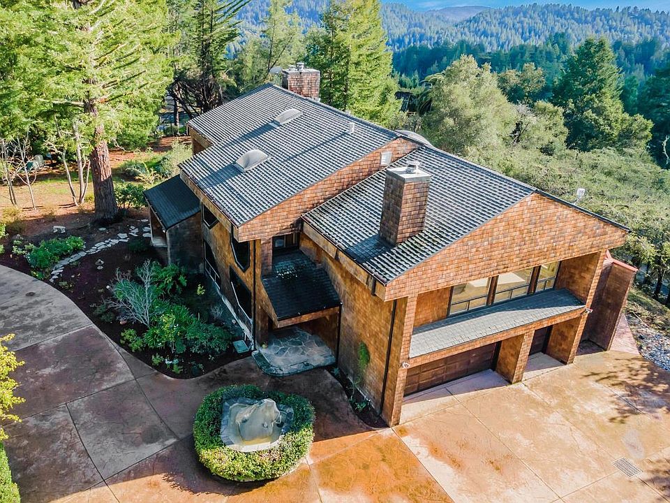 This welcoming and dramatic mountain home has it all. Spacious views from large deck with hot tub. Chef's kitchen with center island, marble counters, ample storage. Great entertainment space with flow from living room to dining room, kitchen, and deck. Luxurious master suite with stone fireplace and room to lounge. Five spacious bedrooms for family or guests or for multiple home offices. Separate cozy family room for streaming movies at home by the fireplace. Large laundry/ crafts room with great storage for hobbyists. Custom solid oak cabinetry throughout, stained and leaded glass accents, dramatic high ceilings. New custom patio on first floor with attractive stamped, reinforced concrete. New whole-house 22 kW generator. Enjoy this spacious property with level field for playing catch and a magical fairy grove of redwood trees. Truly distinctive and impressive. Excellent schools! Excellent privacy yet only 20 minutes to world class dining and shopping!
