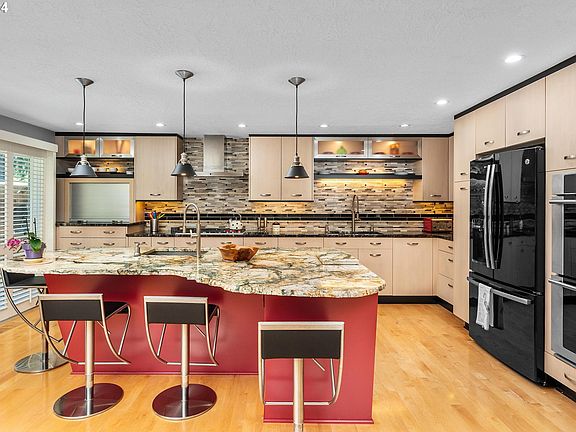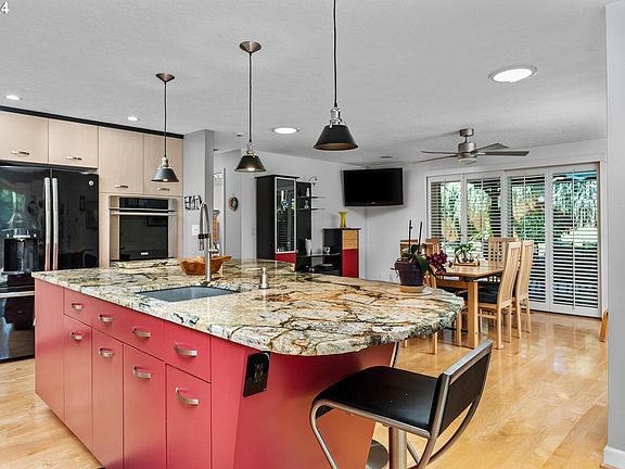Experience retreat living on the ridge in Milwaukie! This meticulously remodeled home is perfect for entertaining, with a stunning custom kitchen with one of a kind live edge granite countertops and a spacious island. The fully fenced backyard is ideal for pool parties and entertaining. (the pool has solar and gas heat, plus a solar cover.)The spacious primary suite includes a walk-in closet and an en-suite bathroom with a walk-in shower and heated tile floors. There is a main level office, with direct access to the pool area. Could working from home get any better? Additional features include a three-car garage with epoxy floors and a custom stainless steel top workbench. Recent upgrades include a new roof in 2023 and a new water line and water heater in 2024. Schedule an appointment to view all the special features in this home!