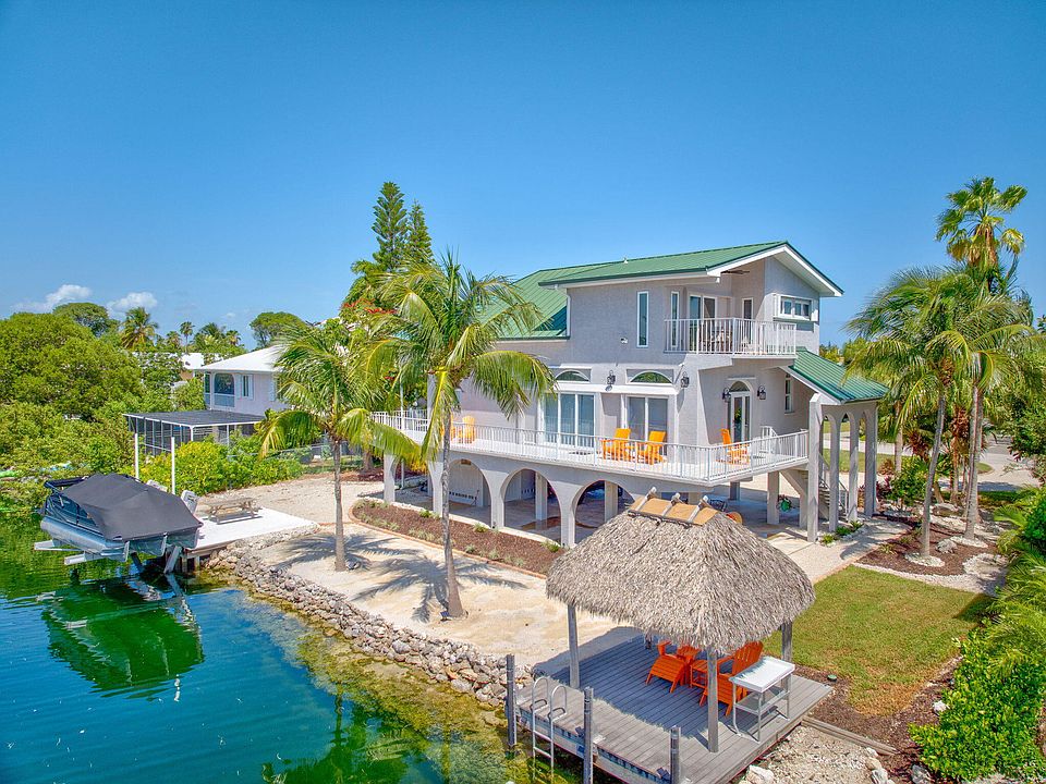 Escape to the tranquil beauty of Sugarloaf Shores with this beautifully renovated 4 bedroom + bunk room, 3.5 bath CBS home, ideally positioned on a tropically landscaped 12,500 sq ft lot with stunning open water views of Sugarloaf Sound. Inside, you'll find a bright and spacious open-concept great room that effortlessly blends indoor and outdoor living, perfect for both relaxing and entertaining. The coastal-modern design features high-end finishes, a soft neutral palette, and abundant natural light streaming through impact-rated windows and doors. Step out onto the expansive rear porch just off the great room, where panoramic water views and island breezes set the tone for laid-back Keys living. After a day on the water, retreat to the large primary suite, complete with a spa-inspired en suite bath and a private balcony overlooking Sugarloaf Sound. 3 additional well-appointed bedrooms and a versatile bunk room offer plenty of space for guests and family, making the home as functional as it is inviting. Outside, this property truly shines with 100 feet of canal frontage, two docks, a boat lift, and a tiki hut, offering everything you need to embrace the Florida Keys lifestyle. Whether you're setting off for a day of boating, enjoying dinner under the palms, or simply unwinding to the sounds of the water, this home delivers the coastal escape you've been looking for. Tucked away in one of the Lower Keys' most desirable neighborhoods and just 20 minutes from Key West, this is your chance to own a slice of paradise where luxury, comfort, and location come together seamlessly.