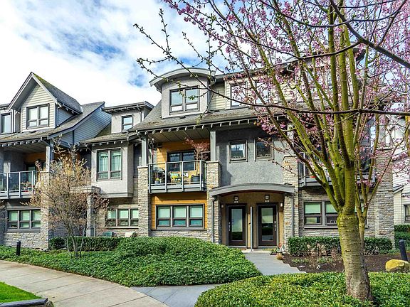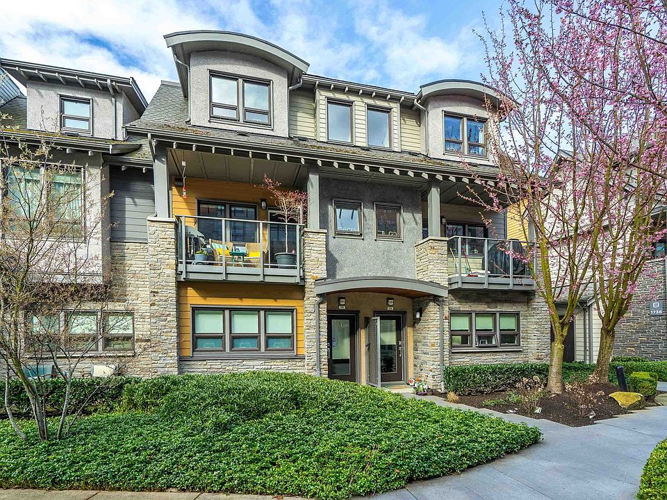 The best exposure in the complex-overlooking the landscaped courtyard+fountain! Thoughtful floor plan with exceptional finishing! With 9' ceilings in main living area, open concept kitchen (quartz c/tops, s/steel appliances, 5 burner gas range) flows into dining/living area with easy access to east exposed deck (12'x6') overlooking courtyard (n/gas hookup). The upper floor offers three bedrooms, primary with full ensuite, laundry + full bathroom. Desk/office area too! Engineered wood flooring +nu-heat bathroom floors, light and bright throughout! 1268 sq.ft. of living space! Elevator to secure parking R58 (storage in front)+ bike storage. Pets welcome! Maint $394.74/mo. Walk to shops and amenities! Step out of your front door into the quiet courtyard with sitting area and water feature!