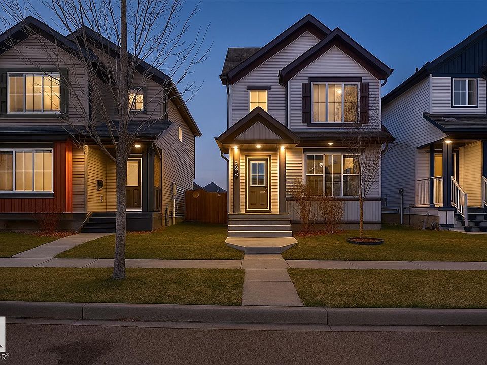 Welcome to this unique 2.5-storey detached home located in the highly desirable community of Walker in Southeast Edmonton—just steps from all major amenities. This beautiful property offers an open-concept floorplan, featuring a spacious living room and a bright kitchen tucked at the back of the home, complete with a large island and a formal dining area. The second floor includes a generous primary bedroom with a private ensuite, along with two additional well-sized bedrooms and a full 3-piece main bath. The standout third-storey loft showcases vaulted ceilings and provides the perfect flexible space for family time, a home office, or a cozy recreation area. With over 1,825+ sq. ft. of living space, this home comes fully landscaped and fenced, featuring a great-sized deck, a private backyard, and a double detached garage. A fantastic opportunity for first-time buyers or families looking to upsize from condo or townhome living. See it today!