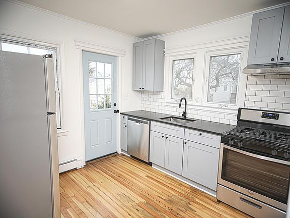 ANNUAL RENTAL available immediately. Sun filled 3 bedroom and 1 bathroom renovated apartment a block from the beach. Recent renovations include; Grey shaker kitchen cabinets with leathered black pearl granite countertops. Stainless steel Whirlpool appliances. Matte black hardware, fixtures and LED light fixtures throughout. Satin refinished original wood floors throughout. Refreshed bath with new vanity and fixtures. Large private front and back porches with private entrances. Shared laundry, dedicated storage and off-street parking. Call/Text or use the Zillow contact form to schedule a showing or inquire.