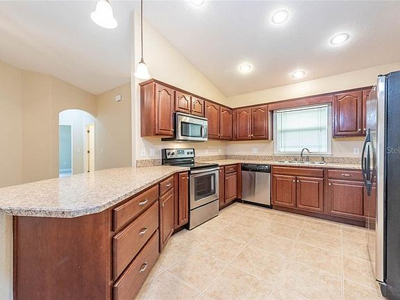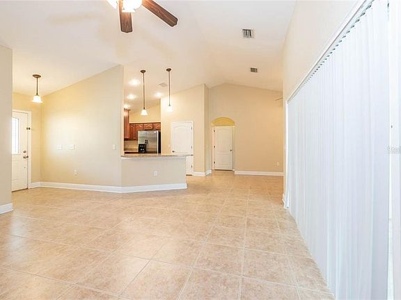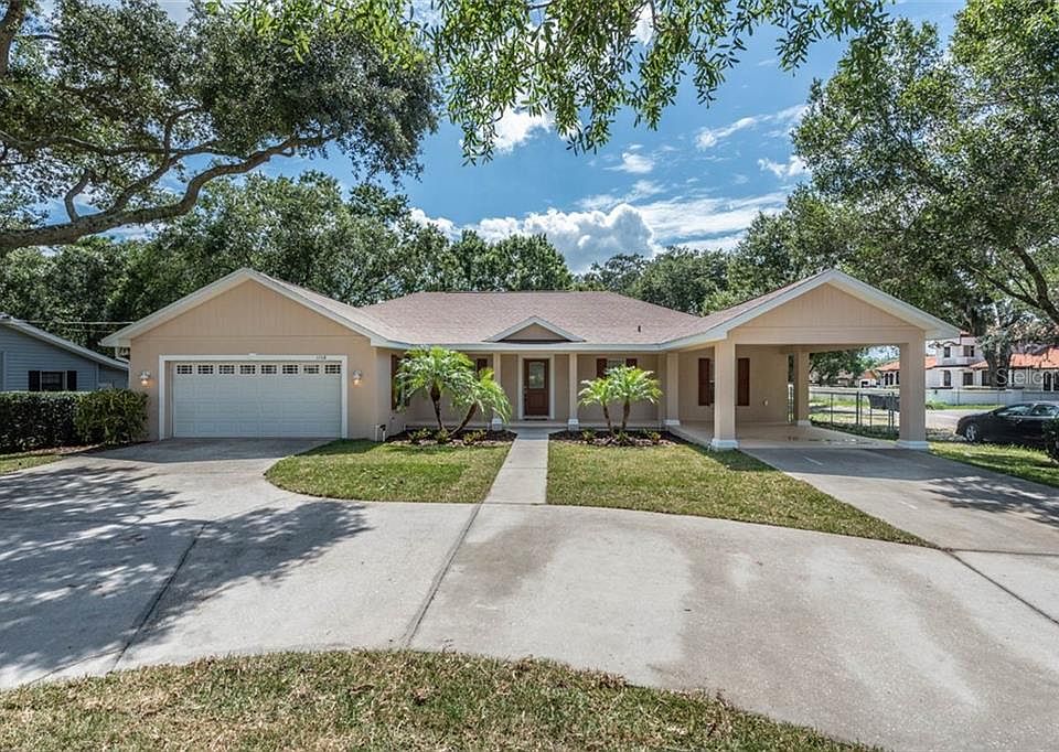 Your dog says "BUY THIS HOUSE!" since its right by the dog park! Prepare to be surprised by this truly move in ready 3 bedroom 2 and a half bath home right in one of the most sought after school districts. Pulling into the circular driveway you will be greeted with the beautiful curb appeal of new sod, landscaping and freshly painted. Not only does this gem have a 2 car AIR CONDITIONED garage( This is NOT counted in sq/ ft) , but also an additional covered carport. As you walk inside you will notice how light and bright the home is with triple sliding glass doors overlooking the huge lanai and fenced in back yard. The kitchen features rich cherry cabinets, matching stainless appliances, recessed lighting, pantry and a breakfast bar. Past the dining area is the master bedroom with a beautiful en-suite bath with a large walk in closet plus a linen closet, garden tub, dual sinks and a separate shower/water closet. Also, on this side of the home is a large laundry room and a half bath right off the garage. Back on the other side of the home are the secondary bedrooms which are generous in size. This home also features double paned windows which make for a peaceful environment, trendy baseboards and rounded corners. Updates include new INTERIOR paint, new carpet in all bedrooms. No HOA and no CDD make this the one you have been waiting for. Schedule your appointment today!!!