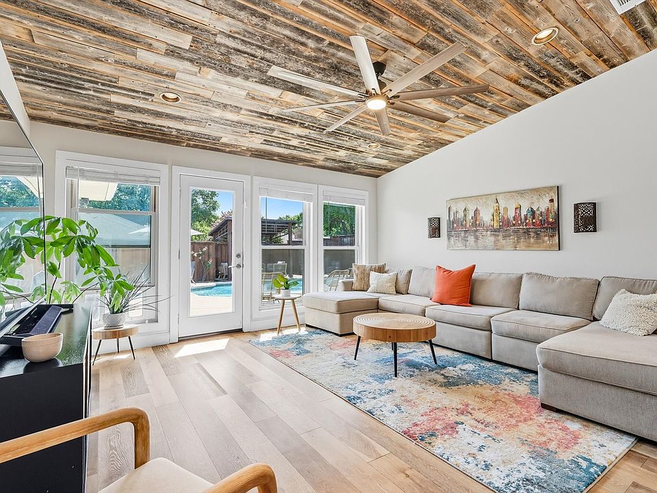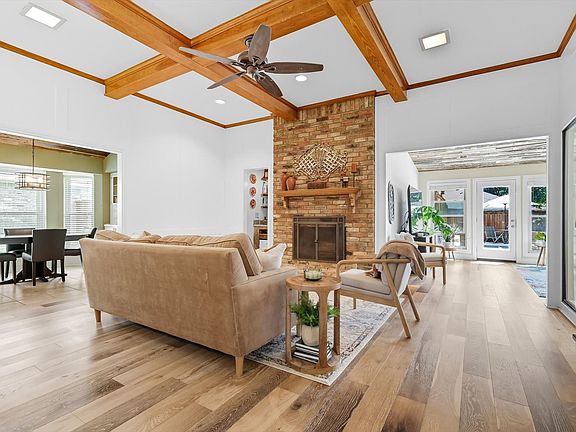 Welcome to this beautifully updated one-story home in the desirable Pitman Creek North subdivision of Plano! This charming residence blends timeless architectural character with modern updates throughout. Featuring 3 bedrooms, 2 full baths, a dedicated home office, 2 living areas, 2 dining areas and a 2-car garage, it offers a spacious and functional layout designed for today’s lifestyle. Step inside to discover a rare and delightful feature — a central interior atrium with a skylight that fills the home with natural light and creates a peaceful indoor-outdoor ambiance. This signature element of 1980s design provides a serene focal point, perfect for morning coffee, indoor gardening, a reading nook or simply enjoying the changing seasons from the comfort of your home. The inviting living room with a cozy fireplace flows into an updated kitchen with granite countertops, ample cabinetry, and a bright dining area complete with a built-in for more storage and the perfect spot for a coffee bar! Another living area at the back of the home is a perfect spot to watch your favorite TV show. The private primary suite offers an updated en-suite bath and ample closet space, while two secondary bedrooms provide comfort and flexibility. Work from home in the quiet, dedicated office with natural light. Enjoy Texas summers in your sparkling backyard pool, ideal for entertaining or relaxing weekends. Recent updates throughout add style and function, while maintaining the character that makes this home unique. Pool refinished in 2023, HVAC replaced 2020, Water Heater replaced 2016, Windows replaced 2016, Roof shingles replaced 2016. Situated in a tree-lined neighborhood near parks, trails, and top-rated Plano ISD schools — this move-in-ready gem is a must-see!