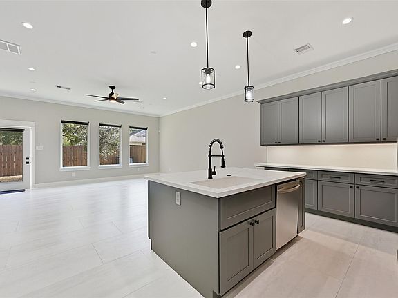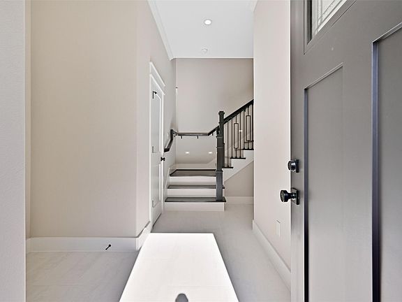 Extremely well-built feature-rich home well appointed with many upgrades.This luxurious modern home greets w/elevated ceilings & LED recessed lighting packages throughout the entire home,beautiful porcelain tile, the stairwell is an abosolute show-stopper w/solid red oak wood treads & white painted risers all well lit by unique stairwell lighting that will make the modern rectangular custom-designer wrought iron staircase glow brilliantly;super gorgeous.Many upgrades within this home.The oversized quartz island kitchen(in-island farm sink/faucet)is superb & well lit including undermount cabinetry lighting,42"cabinetry w/SOFT-CLOSE feature ,matte finished hardware pulls that accent &contrast off the gray paint for stunning appearance.Home is prewired for alarm,speakers &TVs(extra heavy-duty framing to hang).The Primary bedroom & bath invites with trayed ceiling,LED lighting,primary closet includes soft close drawers & organizational system.Garage includes epoxy floor,opener and 8' entry