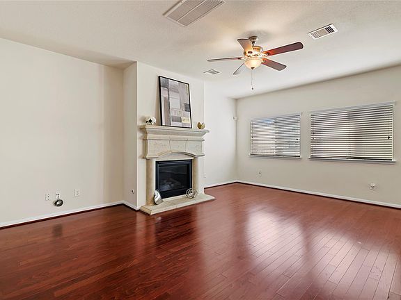Impeccably maintained, charming residence featuring a balcony overlooking an ample greenspace. Enjoy a coffee on the primary bedroom balcony and unwind around the fireplace! Elegant finishes throughout; wood floors on first level including the stairs. Updates include new carpet, fresh paint inside and out, and new appliances including range microwave and dishwasher. The kitchen boasts granite countertops and a sink in the island and the refrigerator is included! Additional highlights include a formal dining room with arched entry, study with french doors, and game room with shelved closet for storage. The laundry room is equipped with shelves and closet rods. Conveniently located near major routes to the Medical Center and downtown, with plenty of retail options in Pearland, easily accessible from Highway 288. City Park offers a variety of new dining and shopping venues nearby.