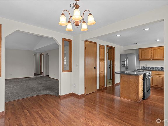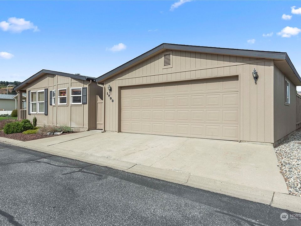 “Wenatchee’s finest adult mobile home park” Move in ready. Updates include new furnace/heat pump. Desirable floor plan, lots of natural light, modern updated kitchen, matching appliances, great living/dining area, primary bedroom is good sized, new carpet & primary bath has beautiful tiled shower, double sinks & lots of closet space. Beautiful home has curb appeal & sits in a desirable location in the development. Close to the pool/community area. Large covered patio area, space for a pet. Private, fenced & irrigated yard. 2 car garage has ample space for parking/storage. Items that are covered in dues: w/s/g/irrigation/road maintenance/pool & community area are kept up. 1 small dog/or 1 small cat are ok. Park app approval required.