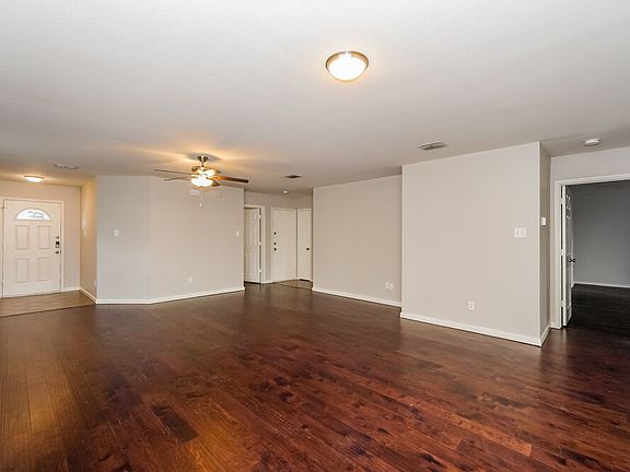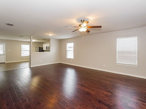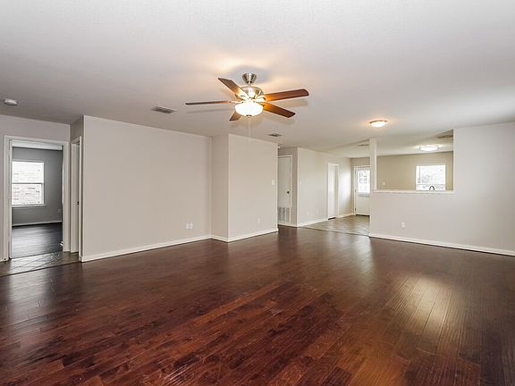 Backyard patioOpen floor planHardwood floorsStainless steel appliancesGranite countertopsWalk-in closetCeiling fan