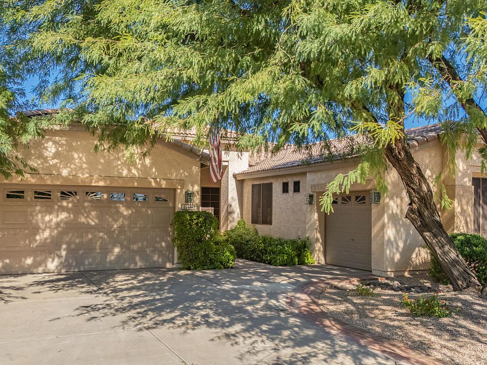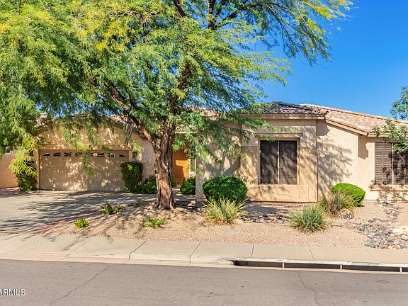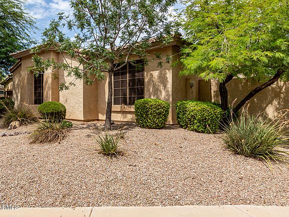 This meticulously maintained single-level split floor plan home on a desirable corner lot with no interior steps offers elegance and everyday comfort. The spacious primary suite features two custom walk-in closets and a private bathroom set on its own side of the home. Plantation shutters, vaulted ceilings, and natural light enhance the open living and dining areas. The kitchen includes a double oven, walk-in pantry and an island that opens to the family room. Three additional bedrooms and a large laundry room offer excellent flexibility. The 3-car garage with epoxy flooring adds storage and convenience. The backyard is an Arizona oasis with a covered patio, grassy play area, and sparkling pool. Ideal location near the 202 with convenient access to shopping, dining, and amenities.